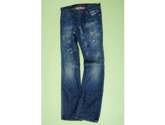 Jeans worn by Teri Hatcher's character "Susan Delphino" on the hit TV show Desperate Housewives and signed by the enitre cast. Proceeds from the sale of these jeans go towards helping underprivileged youth attend theater arts camps through Deborah Gibson's Gibson Girl Foundation.