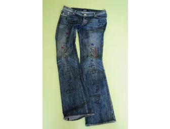 Jeans worn and signed by comedienne and actress Melissa Peterman. Proceeds from the sale of these jeans go towards helping underprivileged youth attend theater arts camps through Deborah Gibson's Gibson Girl Foundation.