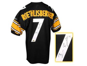 Bids are for a limited edition Ben Roethlisberger hand-signed official home black Pittsburgh Steelers jersey. "Big Ben" helped lead the Steelers to the greatest post-season run in NFL history and an NFL Championship by winning Super Bowl XL - in only his 2nd year in the NFL. Roethlisberger set numerous rookie quarterback records as a rookie in 2004. Big Ben is arguably one of the best quarterbacks in the NFL today. Certificate of Authenticity included.