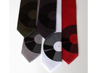 Vinyl Record Necktie - Narrow Width Black on Silver