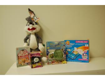 Bugs Bunny stuff animal, Wii-Big Brain game, turtle finger puppet (Zhu Zhu pets) and a Magic 8 Ball
