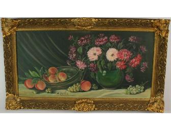 Subject: Flower, Flowers, GrapesArt refers to a diverse range of human activities, creations, and expressions that are appealing to the senses or emotions of a human individual. The word art may be used to cover any or all of the arts, including music, dance, literature and other forms. EuroLux Antiques uses the word art to refer to the visual arts of painting, drawing, and printmaking.
