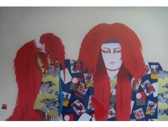 These 2 prints are entitled "Lion of Winter" (159/300) and "Lion of Fire" (50/300) and are from his collection of Kabuki Theatre images. Both are 29 x 36 inches, not including a large gold leaf frame.