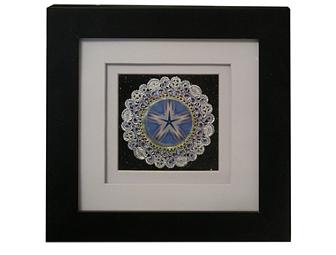 This stunning mandala would make welcome addition to a meditation room, bedroom or perhaps a desktop. 10"x10" framed, double matted, this hand-painted mandala on a silver doily and sprinkled with faerie dust is perfect for meditation purposes.