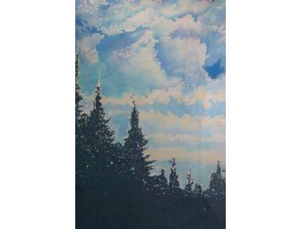 Phan Barker is a local artist, renowned for her talent with Batik. This piece is no exception. This is a signed, original Batik painting, measuring approximately 24x19 inches and is double matted with a black lacquer frame. It is entitled "Dancing Cloud".