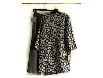 Textile design (hand-drawn) and apparel design by Jane Sisco. Hand silk-screened with environmentally friendly dyes; Belgian linen, square shell buttons.