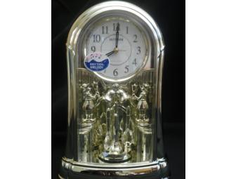 The Mantel Ringers Clock from Rhythm Small World Clocks. The gentle rotating motion of the pendulum will relax you as you hear "Green Sleeves" play every hour.