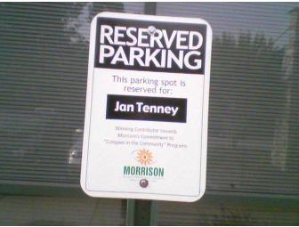 You could have your very own personalized parking spot in front of the Morrison Atlanta Support Center building. A sign similar to the one shown will feature your name and only you can park there for a whole year!!! The spot is located to the left of the main entrance. Don't miss out on this great opportunity.