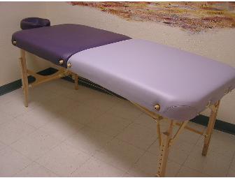 Ready to give a massage? This barely used professional Golden Ratio Woodworks massage table is height adjustable and comes with protective carrying case. The table can be used for Reiki treatments as well.