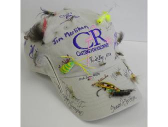 Celebrity Fly Tiers Hat #2 sports hand-tied flies and autographs specifically for Casting for Recovery fundraising purposes by top names (and CFR fans) including Jim Herlihan, Andy Sutton, Nancy Hopping, Frank Thompson, Michael Schmidt, Lee Weil, Mike Heck, Bill Chandler, John Prokorym, Shawn Britton, Robert Schreiner, Garren Wood, Masahito Sato, Chris Reeves, Randy Buchanan, and Leon Piasecki. Collected during the Fly Fishing Show in Somerset, NJ, in 2010.