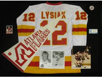 A hand-signed Atlanta Flames Jersey { Tom Lysiak }