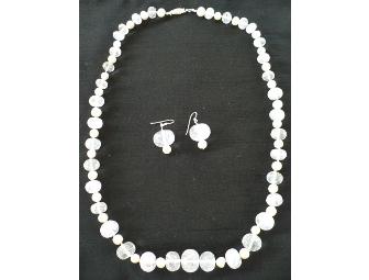 Beautiful purple quartz with cultured pearls on sterling necklace & earrings set donated by A Few Figs Studio Custom Jewelry Design.