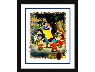 "Snow White" has left many Disney fans singing "Hi-Ho, Hi-Ho" for years. This love story tells the tale of a beautiful Princess who is poisoned by a bite into a bad apple. Eventually saved by a kiss from her love, the Prince, Snow White spent most of the film befriended by the ever-loved Seven Dwarfs. This limited edition 11x14 lithograph features a piece of actual filmstrip cel from original Snow White movie reels. Item comes professionally double-matted and framed and with a Certificate of Authenticity.