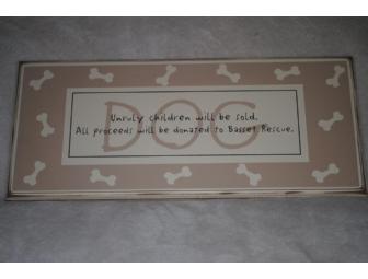 "Unruly children will be sold. All proceeds will be donated to Basset Rescue" Wall plaque for any Basset lover.