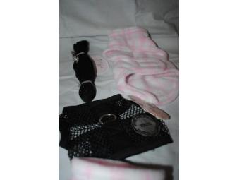 XS (chest 10-13 & neck 7-10) 2 Plaid Light Pink Fleece Vest & Black Harness with Leash