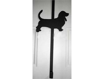 These metal basset wreath holders can be used any time of the year! Basset Hound Wreath hanger measure 14" long with a width for the top of the door at 2". They are powder coated to endure outdoors too!