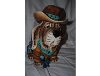 A must for any Basset collector to keep your dog treats or your cookies in this very cute and rare find of the "Cowboy" Basset Hound cookie jar!