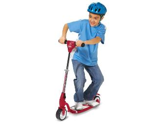 The new EZ-Rider from Radio Flyer is the easiest to ride 2-wheel scooter. The scooter comes with extra wide wheels and a lower foot desk for better balance. The EZ-Rider features an easy use foot brake and a 3-position adjustable handle bar which folds for easy storage. This scooter weighs 9.48 lbs and is recommended for ages 3-8 years old.