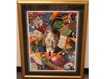 This framed original painting by renowned artist Bernard Brooks was created in honor of WPFW's 30th Anniversary. Bernard Brooks is a second generation artist. His collages are an artistic gumbo of fabric, hand-made papers, paint, metallic mediums and other materials. This painting is full of texture and history with brilliant colors that can bring any room to life.