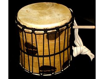 This exquisite drum is handmade with a real animal skin head and cloth decorated wooden body. Oh but its not only a gorgeous show piece, its made to be played. Believed to be developed in Mali, the kenkeni has the highest pitch amongst the drums in its family. So you can display it and play it for hours of musical enjoyment. Make this item yours today!