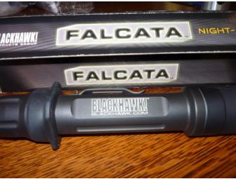 The 9-volt Falcata™ incandescent light features a patented Xenon bulb, specifically designed for shock isolation against recoil and drops. It utilizes 3 CR123A 3-volt lithium batteries. This 6 1/8” long incandescent light is also weapons mountable and comes standard with a pocketclip. The Falcata™ lens is a UCL glass lens that provides maximum light through-put with an anti-reflective coating on both sides of the lense. At 125 Lumens, the Falcata™ 9v has a one-hour run time and is operated with Momentary and Constant On activation. The Type-3 hard anodized black comes standard with a very unique anti-roll and combat grip tail cap attachment that is removeable if the user wishes to deploy or utilize his light without the anti-roll or combat grip attachment. The Falcata’s patented bulb system is designed to withstand the effects of weapon recoil which makes it a very high quality weapons mountable solutions via the 1” body and any 1” mounting bracket. Three 3-volt lithium batteries are included with the Falcata™ 9v.