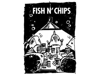 Take home "Fish n' Chips," the whimsical black and white poster from the Foodantics.com collection. This poster is framed and signed by the artist Tom Velardi. The fun-filled Foodantics.com collection has just the right blend of humor and sensibility.