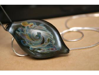 Upgrade your accessorizing with this beautiful handmade glass pendant from Eau Claire art collective Tangled Up in Hue.