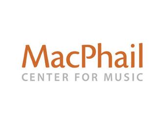 MacPhail Center for Music logo T-shirt and "MacPhail Celebration Sampler", a compact disc recording featuring MacPhail faculty artists.