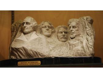 This hydrostone replica of Mount Rushmore by South Dakota Sculptor John Lopez is set on a wooden base. Dimensions: 15" long x 9" wide x 10" tall, 14 lbs.