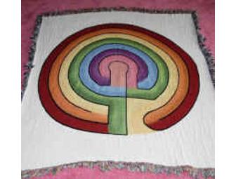 This unique and colorful, all cotton woven tapestry blanket has an 8-colored Classical/Cretan labyrinth design woven into a creme-colored background. Measuring 50" x 60" (about the size to cover a twin mattress) this throw is sure to cover your labyrinth enthusiast, chakra enthusiast, energy practitioner, sacred space, wall, bed, massage table or favorite chair with comfort and style.