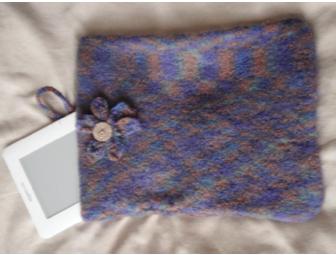 Perfect protection for your Kindle (not included) or small computer on your travels. Hand-knit, then felted in wool.
