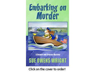 A Beanie and Cruiser (the Basset Hound) Mystery "Embarking on Murder" autographed by Sue Owens Wright, Author.
