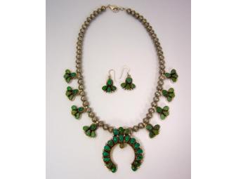 Turquoise Squash Blossom Necklace and Matching Earrings