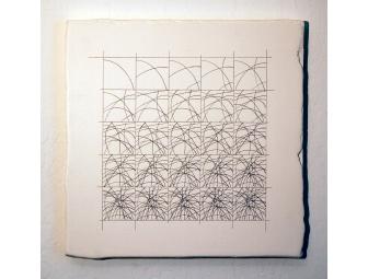 I selected 25 individual arcing lines, repeated as an accumulation of markings to commemorate the first 25 years of CERF+.  The markings seem to me to represent pathways, think routes crisscrossing a continent, where each one is a year's journey, building upon themselves and gradually developing into a cohesive whole.  I look forward to years 36, 49, 64, 81 and so on until all white space is filled in and the great work of CERF+ is done.  Imagine: A day when craftspeople are on such solid ground that accidents never happen!