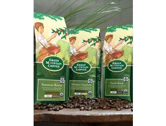 Up for auction is a Fair Trade Organic Whole Bean Coffee Sampler donated by Green Mountain Coffee:
