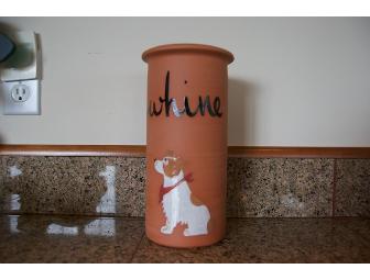 The "Whine" cooler is about 10 inches tall by 4 inches in diameter, but as they are made by hand, the measurements will vary. They hold a 750 ml bottle of wine with ease…simply soak the inside of the cooler with cold water, pour it out and set your favorite pre-chilled (if desired) bottle in…the wet terracotta keeps the temperature from rising.