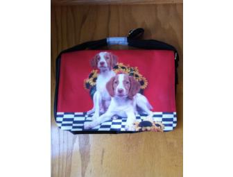 You're smiling - I know you are smiling when you look at these cute Brittany pups. This micro-fiber purse measures 12" X 9". It has a zipper closure and a shoulder strap (folded up in the picture)
