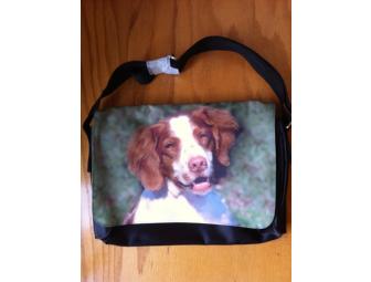 Who can resist a sweet Brittany smile? And that's what you will get with this micro-fiber purse. It measures 12" x 9" and has a zipper closure. It has a shoulder strap which is folded over in the picture.