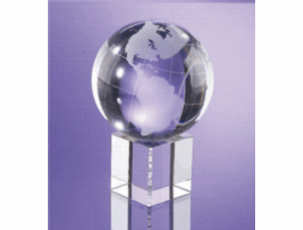 If you are looking to reward someone in a special way, then check out this crystal globe! This optic crystal globe 4" diameter on a 1 ¾" cube crystal base is perfect for an award or a trophy. The base can be personalized at your request and the globe can spin freely. Nicely packaged in a satin lined box, this globe is great for rewarding someone for their achievements and hard work.