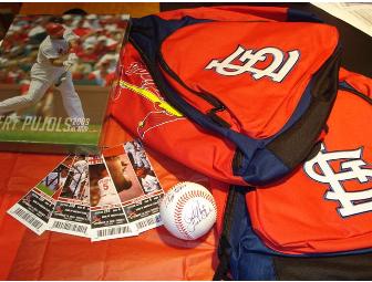 You'll be one of kind with this Cardinals experience! This exclusive package includes four Bank of America Club tickets to the Cards vs. Cubs game on September 14, 2010, at 7:15 p.m. You'll get unlimited food and beverages with each ticket. To make your memories last a lifetime, you'll also get two Cardinals backpacks, an 8x10 photo of Albert Pujols and a priceless All Star "Legends" signed baseball with signatures from Jack Cark ('85-'87), Rick Horton ('84-'87), Mike Matheny ('00-'04), Todd Worrell ('85-'89,'92) and 2010 Hall of Fame inductee Whitey Herzog ('80-'90).