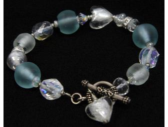 Being eco-friendly is fashionable, so get your hands on this beautiful recycled glass and Swarovski crystal eco bracelet by Diane Katzman, popular local jewelry designer. Each piece of glass and crystal is hand-strung on stretch cord for an easy fit. Now you can save the planet and look good at the same time!