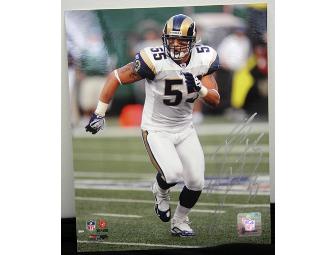 Hang up an 8 x 10 autographed glossy photo of James Laurinaitis, linebacker for the St. Louis Rams, and fill that empty space on the wall of your TV room! Nothing screams "I'm the No. 1 Rams fan!" like an autographed picture of one of the bright stars of the St. Louis Rams. Laurinaitis was chosen 35th in the 2009 draft after he completed four impressive seasons at Ohio State University.