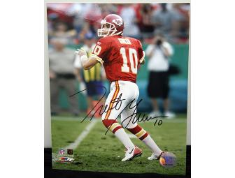 No NFL collection is complete without an autographed, glossy photo of Trent Green, a Kirkwood, Mo., native, during his time as quarterback for the Kansas City Chiefs (2001-2006). Green is one of just 10 players in the NFL to log more than 4,000 yards in three or more seasons. Green also played for the St. Louis Rams (1999-2000, 2008), the San Diego Chargers, the Washington Redskins and the Miami Dolphins. After a long career, which began in the 1993 draft, Green retired in 2009 to pursue broadcasting. Don't miss the chance to add his 8 x 10 photo to your collection!