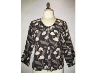 Hand Block-printed Anika Buta Blouse in black and white.
