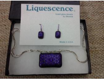 This is a beautifully unique dichroic fused purple glass pendant necklace with matching earrings.