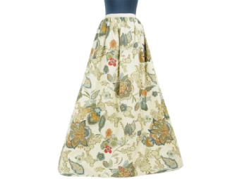 The skirt was created by hand in Oscar de la Renta's atelier using fabric is from the Oscar de la Renta Home line of textiles (fabric id: Arcadia in Blue/Cream, 2010122-155), available to the trade only through Lee Jofa. All proceeds will go to Casa del Niño, Oscar de la Renta's charity in the Dominican Republic that provides assistance, education, and medical care to children in need.