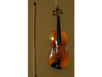 A 3/4 Size Violin with case and accessories (rosin for bow, bow, pipe tuner, and dampit) with the Lark name brand inside the instrument. Item is in ready to play condition. Perfect for that beginner student.