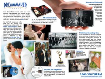 HD wedding videography service, including unlimited shooting time (starting 1.5 hours before start of ceremony and concluding at end of scheduled reception) delivered to client in 1080p High Definition on Blu-Ray Disc and 5 copies on DVD in standard definition to give to family and friends.