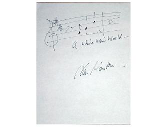 Broadway's Alan Menken has handwritten and signed a musical phrase from Jasmine's theme song "A Whole New World" framed for today's auction.