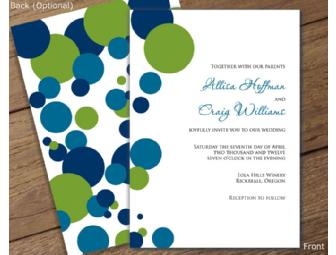This package includes 50 customizable Wedding Invitations, RSVP's, Reception and Thank You cards. You can select from over 60 different designs, 100 colors and 70 fonts to create the invitation suite of your dreams.
